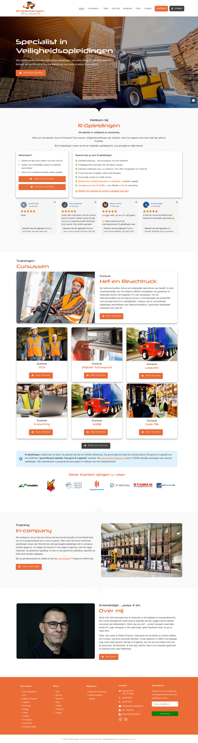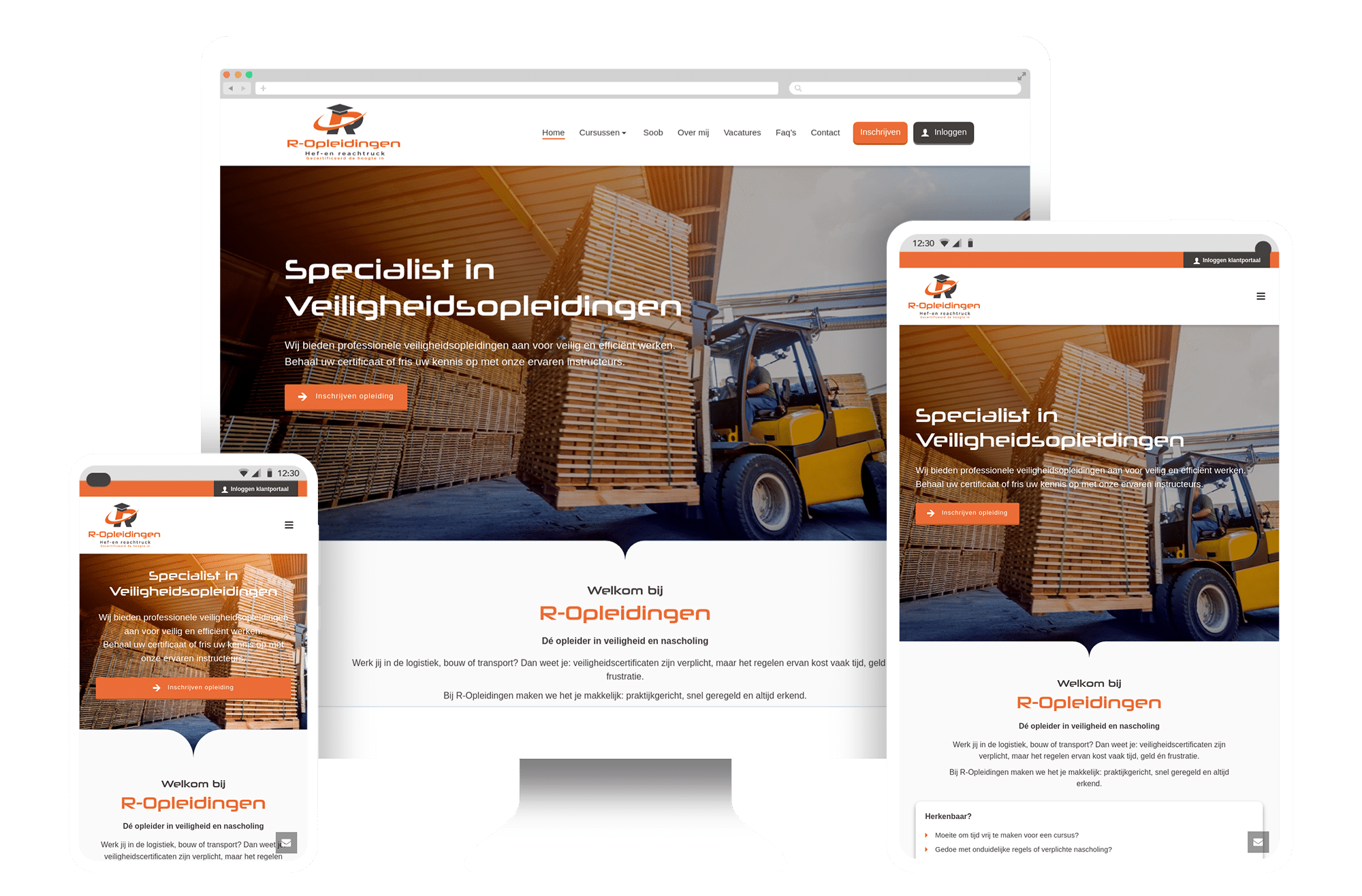 In nauwe samenwerking met het team van R-Opleidingen hebben we gekozen voor een toegankelijke structuur, duidelijke navigatie en frisse vormgeving. Hierdoor kunnen bezoekers snel inschrijven voor cursussen, informatie vinden over het aanbod en direct in contact komen met ervaren instructeurs.